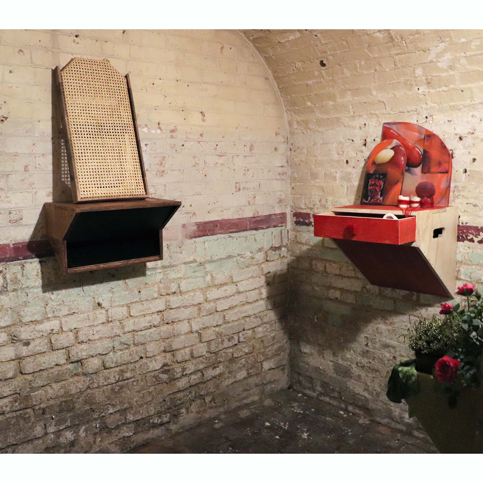A site responsive group exhibition by Thin Red Lion, exploring the spatial and emotional law of the vaults and tombs below the New St Pancras church.